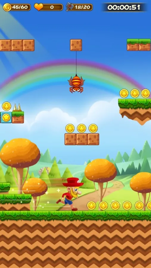 Run, jump and explore the arcades. Travel across dangerous forests, Volcanoes, deserts, Machine rooms, rock paths, swamps, etc. Collect coins, gold, acceleration props to help you defeat the Monster!