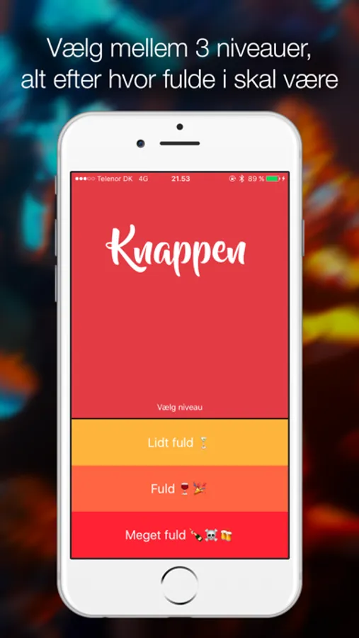 Knappen er det vildeste drukspil - gør det klar på at blive fuld! Den store knap bestemmer bestemmer spillets gang, hvem der skal drikke og hvor meget. Spillet spilles ved at alle skiftes til at trykke på knappen.