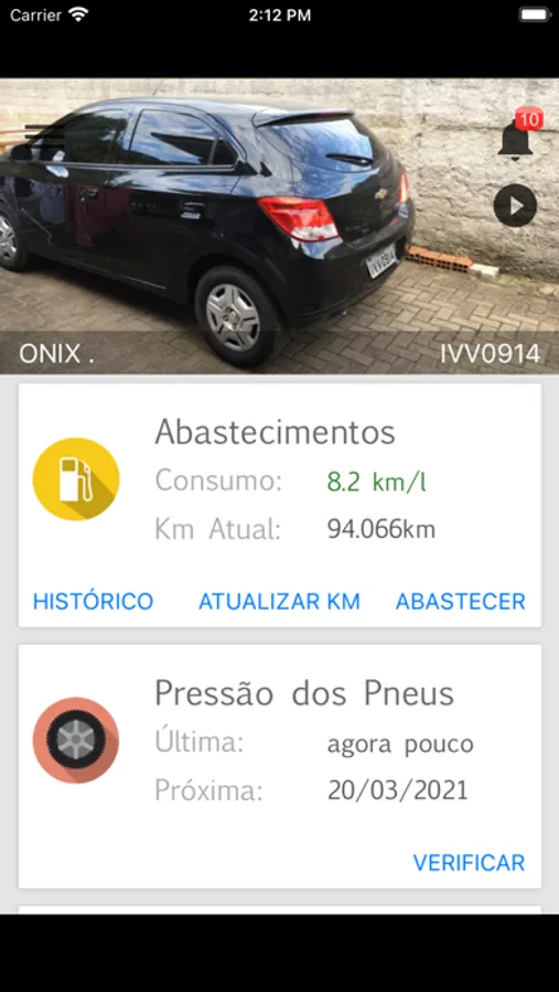 Você poderá ser lembrado regularmente sobre verificação do Nível de Óleo, Calibração Pneus e Nivel de agua. O App armazena a última verificação, e avisará a data de próxima verificação, mantendo seu veículo sempre em dia com os itens básicos de manutenção.