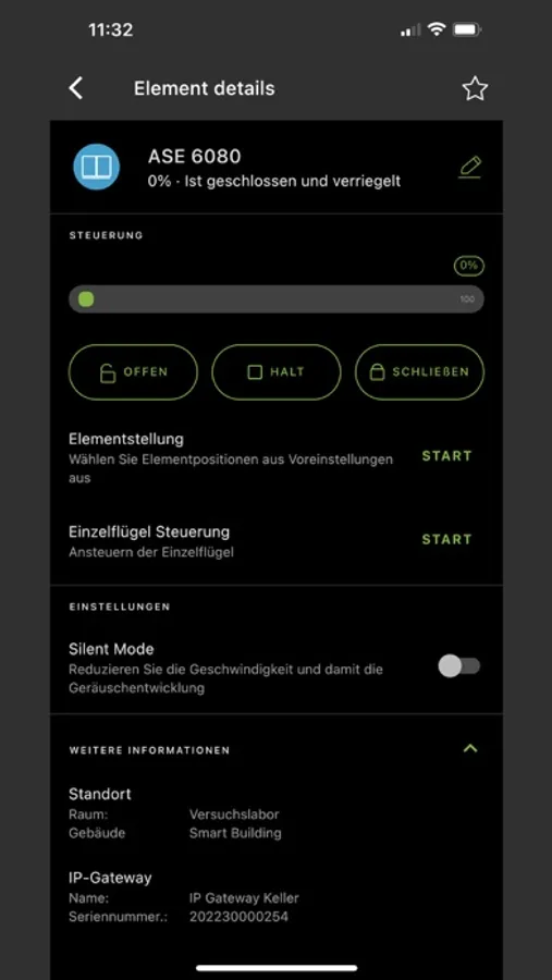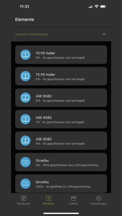 The application enables you to control your Windows or sliding systems in a single mode or group mode. Convenience functions like time ventilation or element positioning can be activated simple and fast.