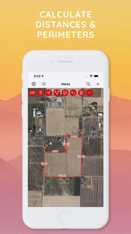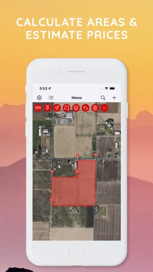 Marea helps estimating the area for a region given by a set of coordinates. Useful for plots, farm land, roof measurements and anything you can see with Maps.
