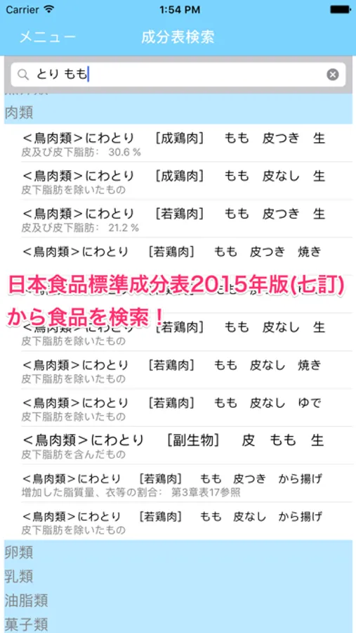 ・食品成分表の最新化、及び追補2016年データを追加しました。(ver 1.1.0)