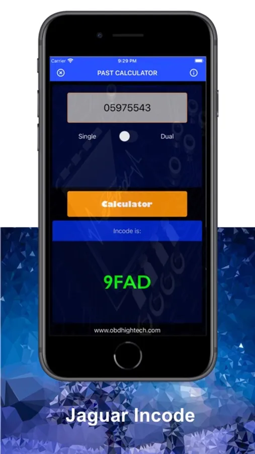 Calculate the INCODE by enter OUTCODE from Diagnostic Tester and click "Calculator" button. In few seconds App will show INCODE.