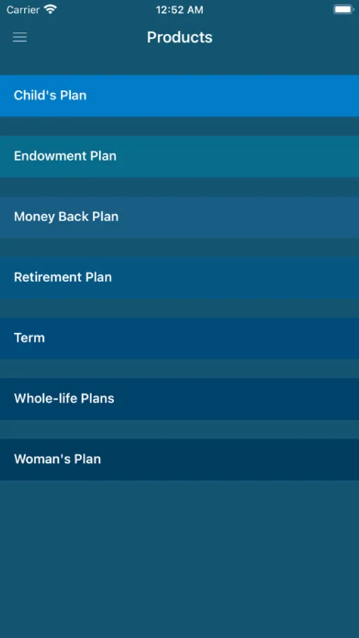 • Products have collections of product categories and products. Under this section user can view Product’s key features, policy requirements, benefits/riders information