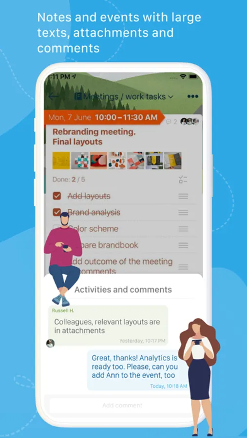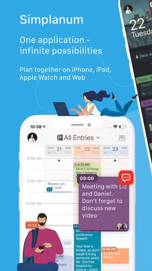You can manage notes and events both online and offline. All your entries are available as a list as well as on different calendar grids and are instantly synced between all your devices, which makes every entry available and relevant to you.