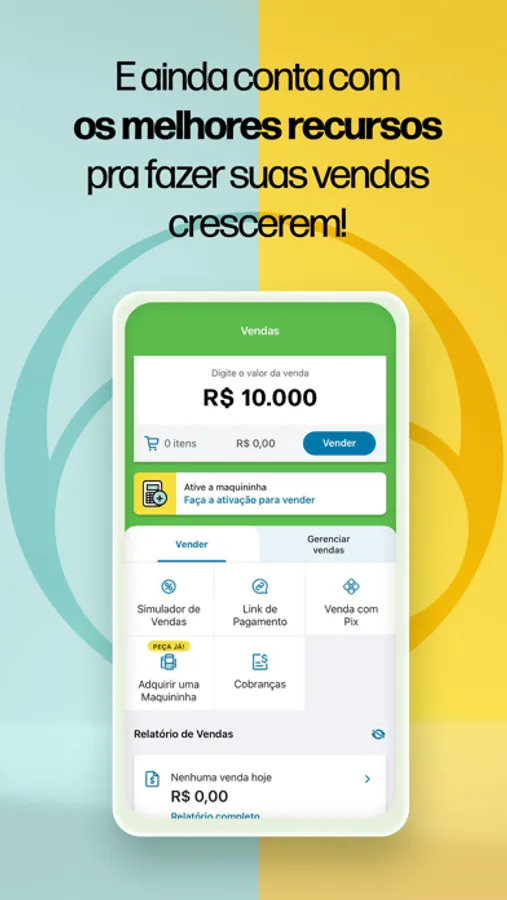 Além da conta, temos a mais completa linha de maquininhas e aplicativo de gestão para que sua empresa continue vendendo e crescendo cada vez mais.