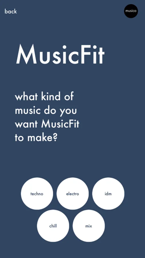 Musica Combinatoria (MUSI-CO for short) is a young company developing systems for music generation using Artificial Intelligence. MusicFit is the first app demonstrating the potential of our technologies. We would like MusicFit to grow up to be a fully featured sports app, and need your help to take it from the lab to the streets. Please enjoy using it for free and share your ideas for improvement with us at info@musi-co.com