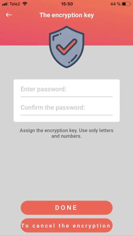 3. In the new window, enter and confirm your key consisting of at least 8 characters. The app will put your key into a 15360 bit key. If the operation is successful, you'll be back on the chat screen.