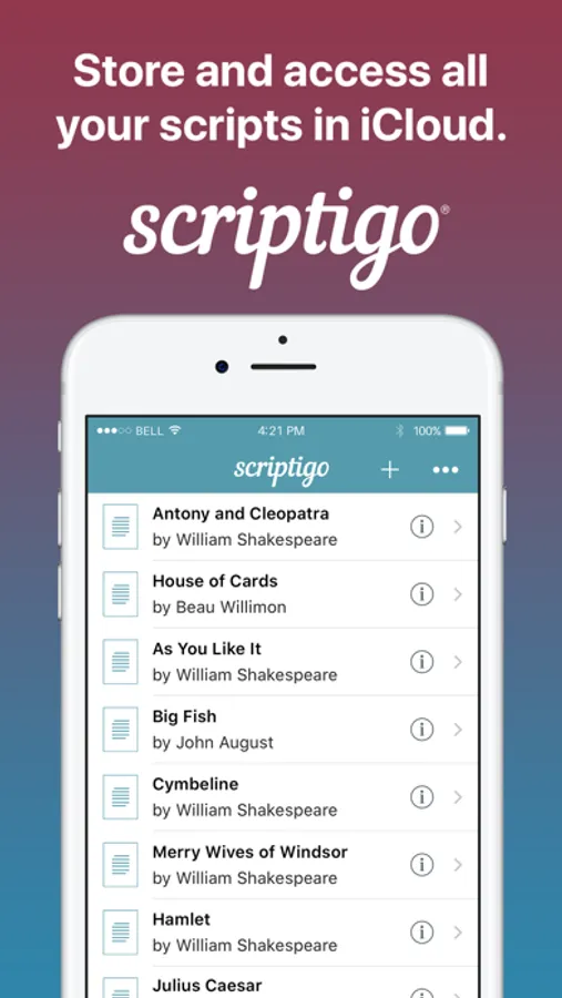 • Manage your script library: have all your scripts in one place, easily accessible, and synced across your mobile devices