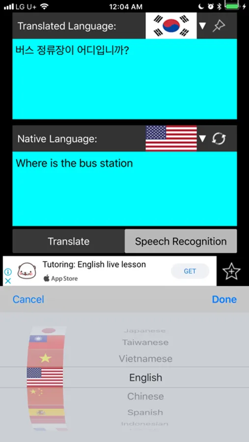Use Wi-Fi or cellular data to connect to speech recognition and translation servers.