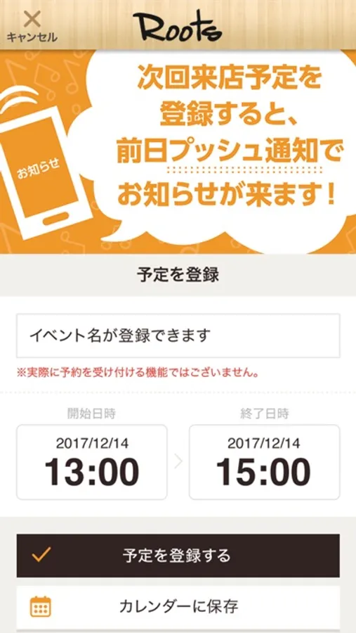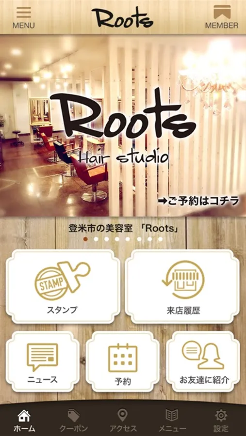 このアプリでは、Rootsの色々な情報やアプリユーザー限定のお得なサービスが手に入ります!