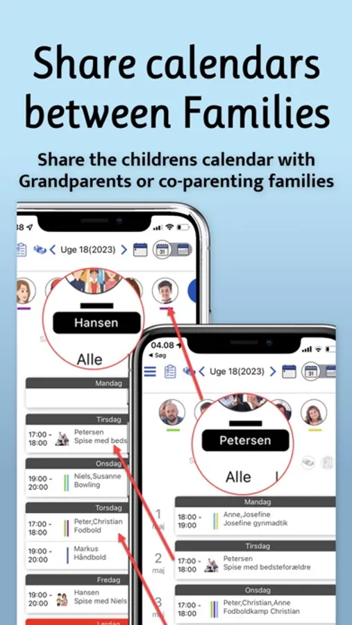 The App is aimed at all types of families and especially also co-parenting families as e.g. the calendar for a individual Family Members can be shared with another family.