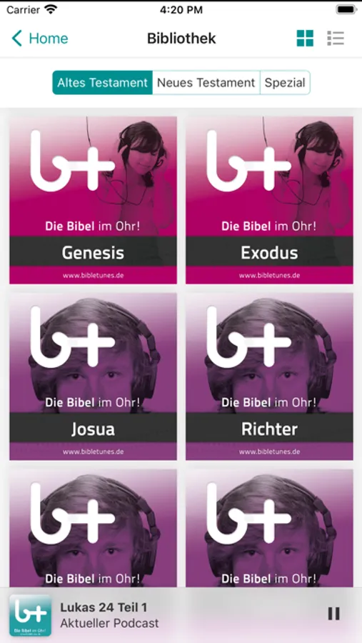 Herzlich Willkommen – es ist schön, dass du hierher gefunden hast! In der bibletunes App findest du täglich eine neue Podcastfolge. Jede Folge ist kurz genug, damit die Bibel auch in deinen Alltag passt. In 5-10 Minuten hörst du einen Bibeltext und einen kurzen, wertvollen Impuls dazu. In der Bibliothek kannst du dir alle bisher aufgenommenen Podcasts aus dem Alten und Neuen Testament anhören, und dir beliebig viele herunterladen, um sie auch unterwegs hören zu können.