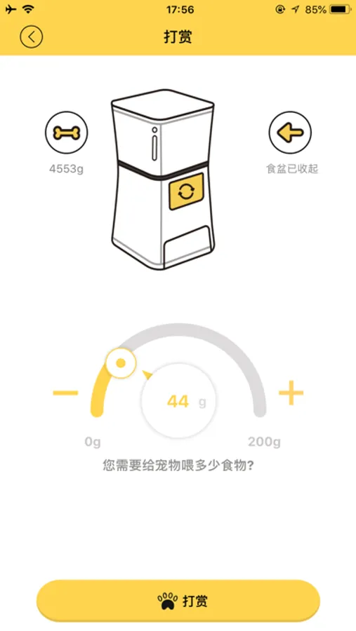 智能称重:能够对喂食器的余粮进行检测,余粮不足发出提醒,并记录喂食情况并统计