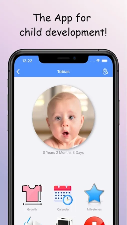 Many other functions such as a calendar overview with the upcoming development steps, growth diagrams, personal picture gallery and helpful information about routine examinations in Germany are included.