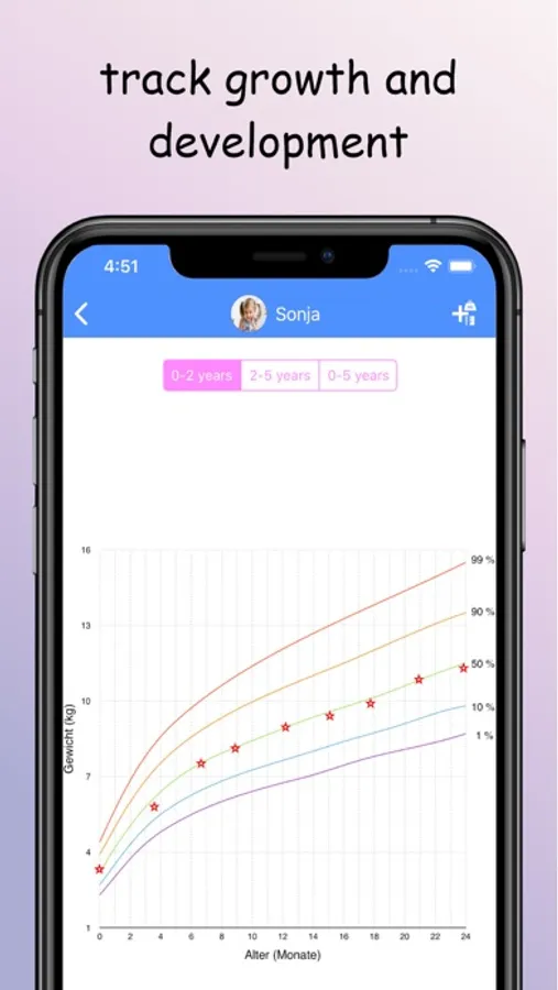 You can use this app to create an individual diary for your child and use average and percentile values to find out about your children's developmental progress.