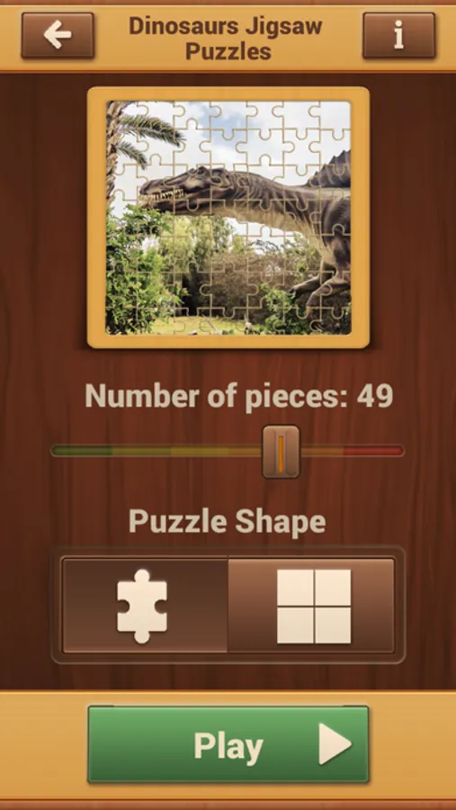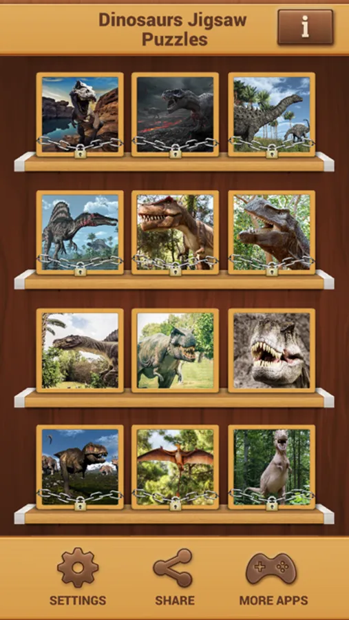 This app brings real dinosaur pictures. When you solve them, set them as free wallpapers and backgrounds. You can also load images from your phone gallery and solve them as photo puzzles. Choose a picture you like, the mode you prefer, and you are ready to begin!