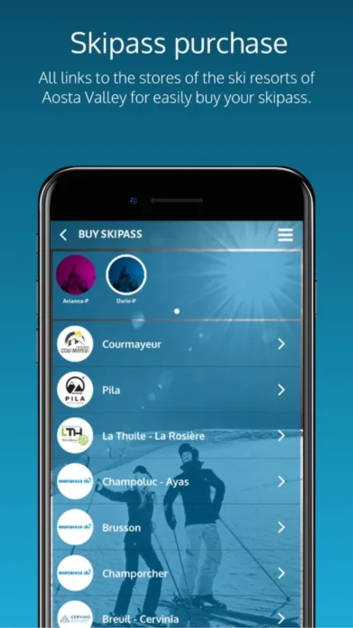 SkiLife app: all the ski slopes of Valle d’Aosta on your mobile phone. Designed for ski enthusiasts, the SkiLife app guides you through the 23 ski resorts in the Aosta Valley.