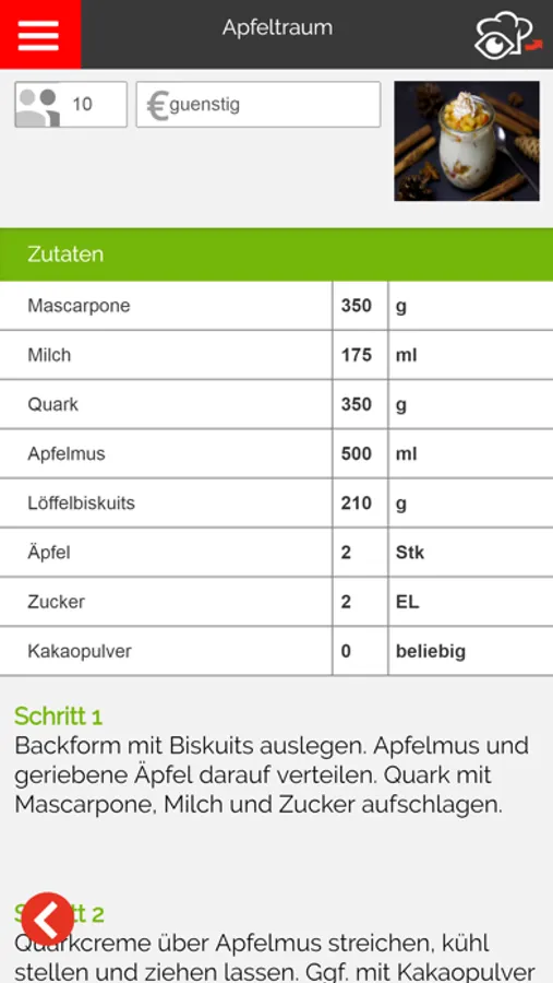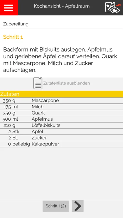 Dann geht der eigentliche Kochspaß los. Dank der übersichtlichen Aufteilung auf Schritte siehst du in der Kochansicht ganz einfach erklärt die unterschiedlichen Schritte.