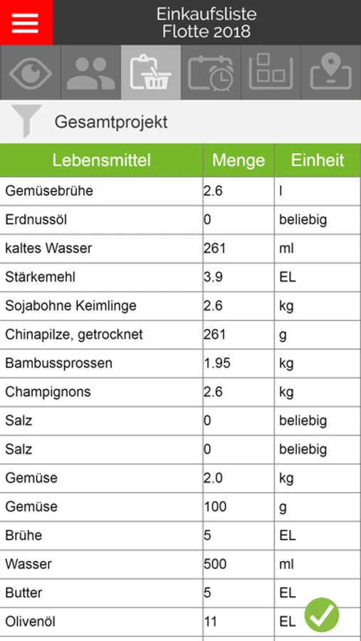 Wenn etwas nicht verbraucht wurde, dann wandert es direkt in das digitale Lager in dem direkt zu sehen ist welche Zutaten noch über sind.