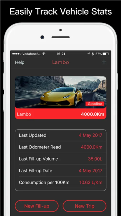 AutoBuddy shows the actual fuel consumption, MPG and mileage for city road and motorway.