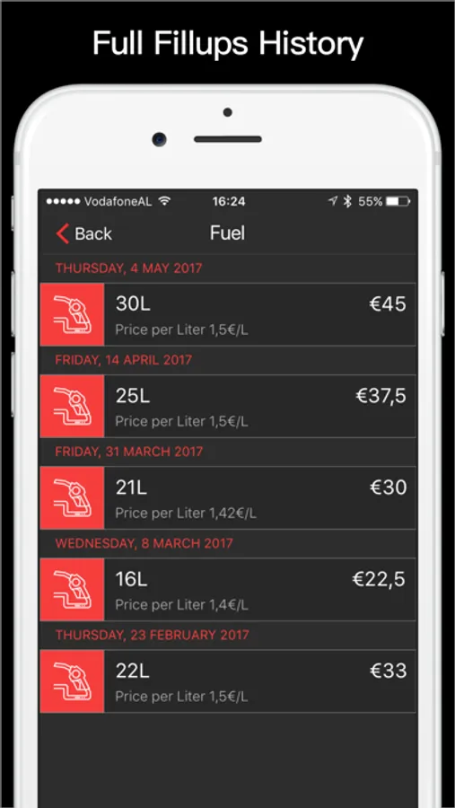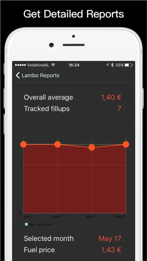 Know your real cost per km or mile and how much you spend on fuel daily, monthly or lifetime.