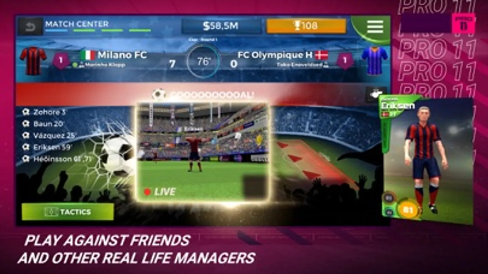 Join managers worldwide in Pro 11 now to become a true leader of your professional football squad. Every goal counts!