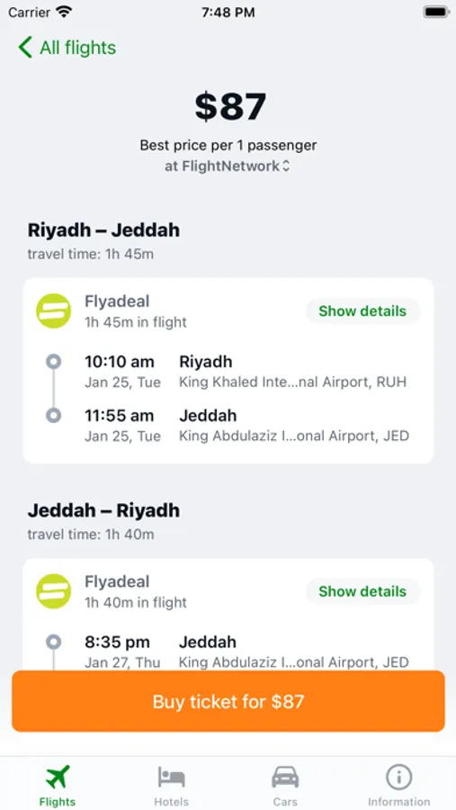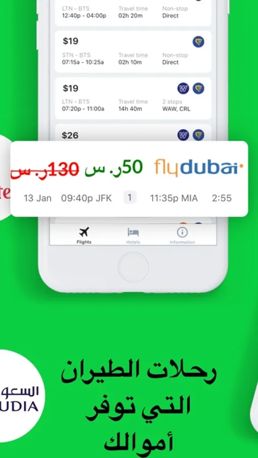 حجز أرخص رحلات الطيران لم يكن بهذة السهولة من قبل! سيقوم تطبيق رحلات الخصم بالمقارنة بين أسعار تذاكر الطيران من مئات شركات الطيران ووكالات السفر، وسيقوم بتوصيل عروض مثالية إلى جهازك مباشرةً.