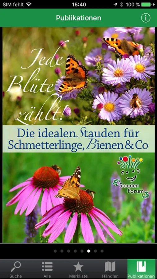 Finden Sie nach erfolgreicher Suche direkt mögliche Bezugsquellen. Per GPS-Ortung zeigt die Stauden-Ratgeber-App Ihnen alle Händler in Ihrer Umgebung, bei denen Sie die Qualitätsstauden des Stauden Forums finden. Zwar sind hier nicht zu jeder Zeit alle 1400 Sorten vorrätig, im Zweifelsfall hilft Ihnen das fachkundige Personal jedoch Alternativen zu finden.