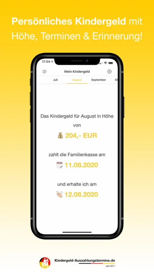 Die Kindergeld Auszahlungstermine App liefert alle Informationen rund um das Thema Kindergeld und darüber hinaus. Gerade die Auszahlung durch die Familienkasse ist jeden Monat unterschiedlich somit ist es für viele Familien wichtig diese Termine zu kennen. Mit unserer App sind diese Termine ab sofort immer zur Hand. Das ganze Jahr mit allen Überweisungsterminen der Kindergeldkasse im Überblick!