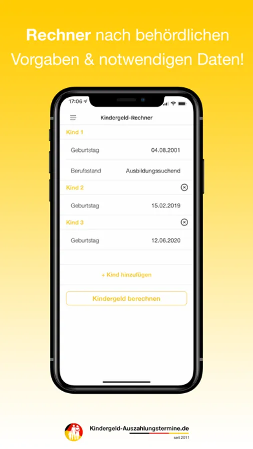 + Kindergeldrechner nach behördlichen Vorgaben