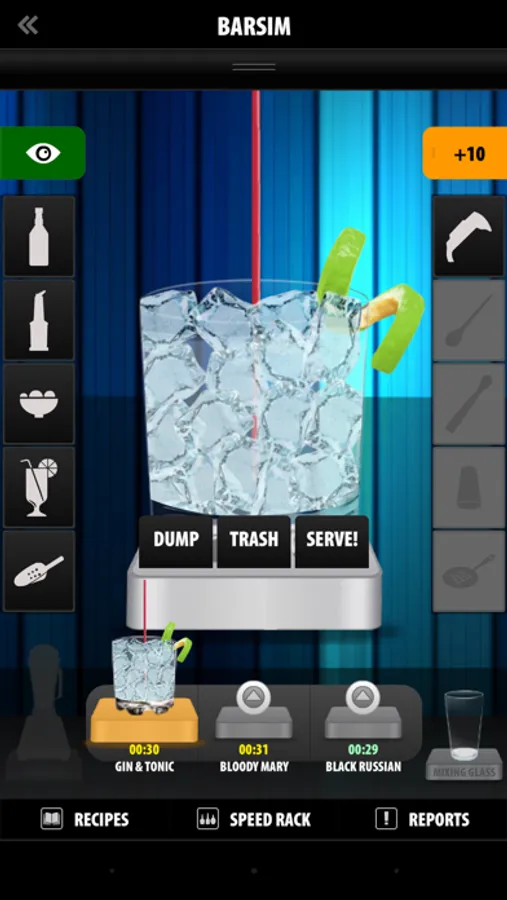 When making Cocktail Recipes in BarSim™ Bartending Simulator every aspect is scored & critiqued, including glassware & ingredients used, amounts poured, proper technique including Shaking, Stirring, Muddling & Blending (including how long you perform the action), as well as proper use of garnishes. You're also timed, so don't spend too much time looking up the recipe if you've forgotten it already. And for the clever few, we've built in a few "secret" flair moves, which will help boost your tip even higher!