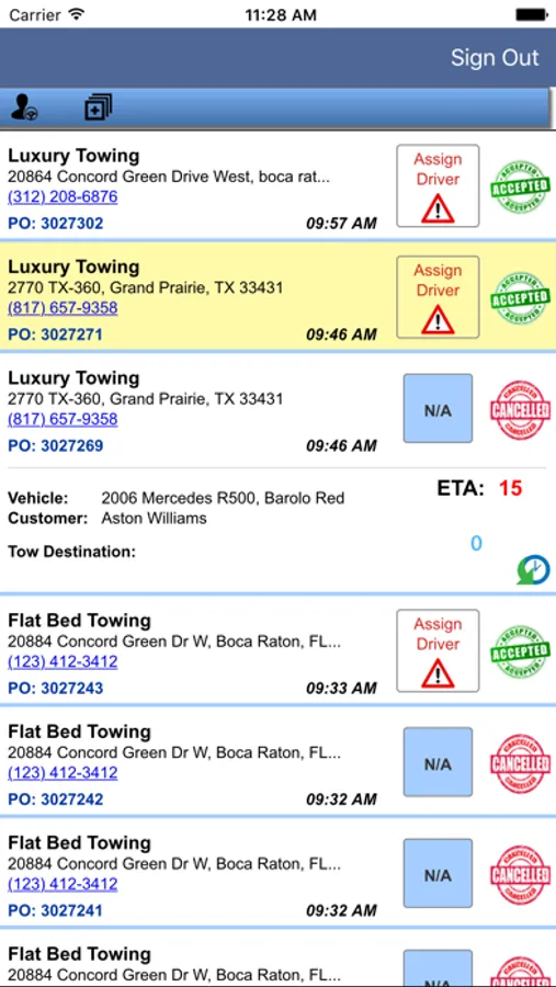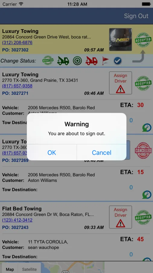 Nation Safe Drivers digital dispatch app, allows acceptance and assignment of service requests as well as other important functions.