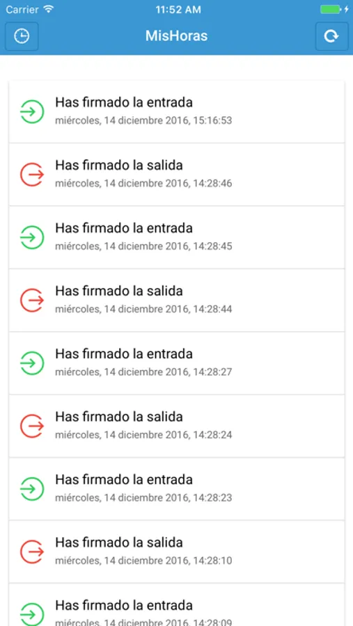 Registra diariamente la hora a la que empiezas a trabajar y la hora a la que sales, y guarda un histórico de los datos de entrada y de salida.