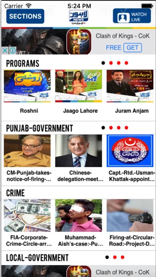 Download the new-look free app. Packed with Lahore news, plus the biggest stories from the Pakistan news and rest of the world news. This Application features live updates, and Live Streaming, better navigation, and more Video stories than before across Lahore and Pakistan . Watch videos of sports News, Local government News, Punjab News entertainment News.