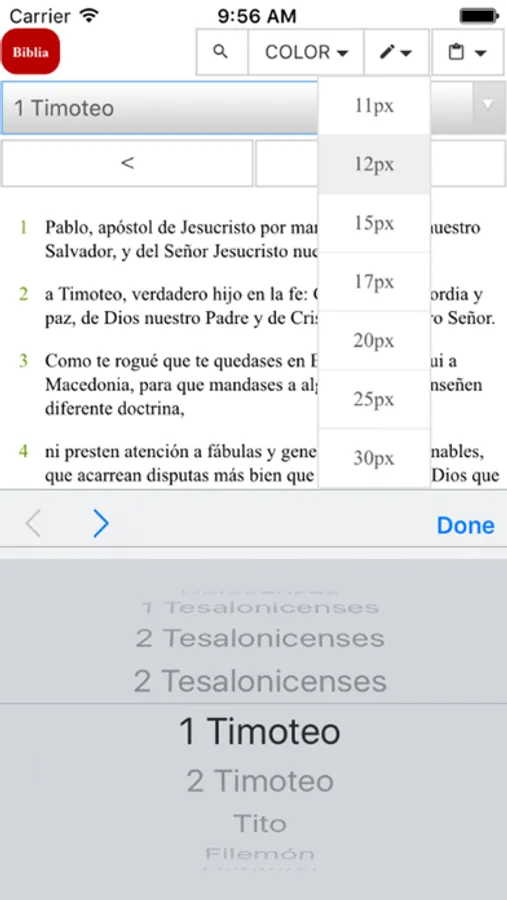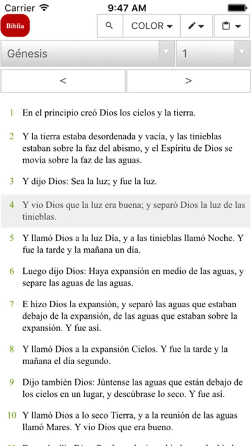 Interfaz amigable al usuario y de rápido acceso a los libros, capítulos y versículos.