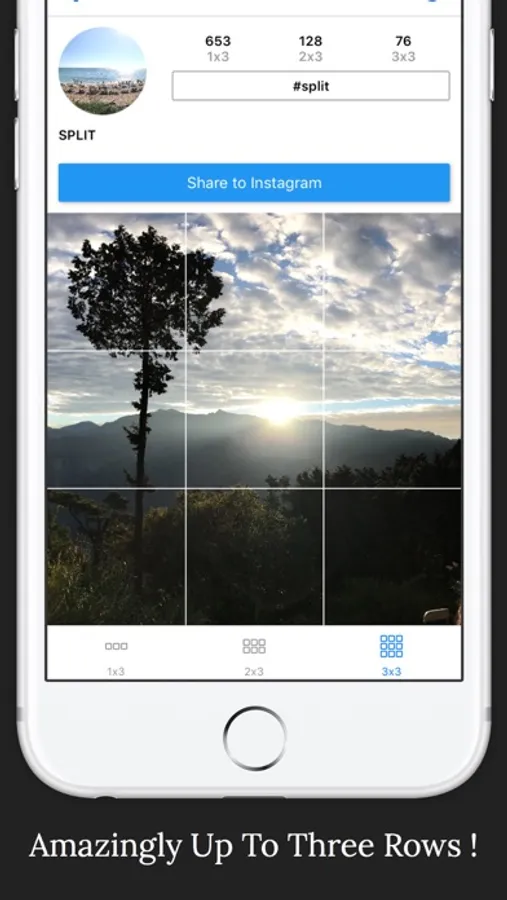 Split makes your lovely photo into 1x3, 2x3 or 3x3 awesome sub-photos.