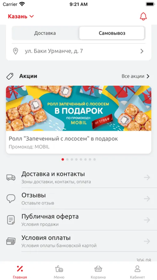 • Возможен самовывоз из удобного для вас кафе нашей сети.