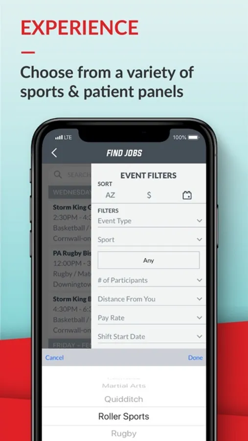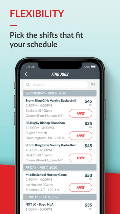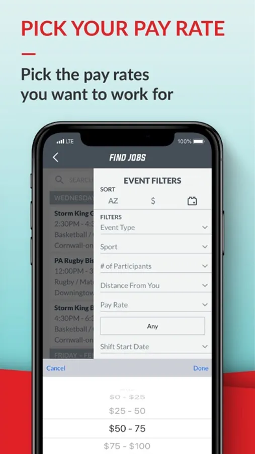 - Easily find work in your area. Filter by location, date, sport, and pay rate.