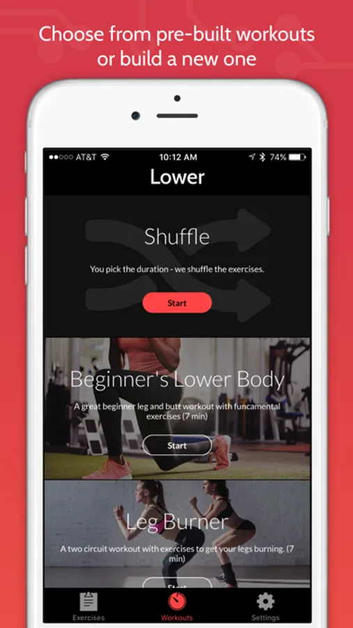 You pick the type of workout you want, the duration - we do the rest by shuffling the exercises!