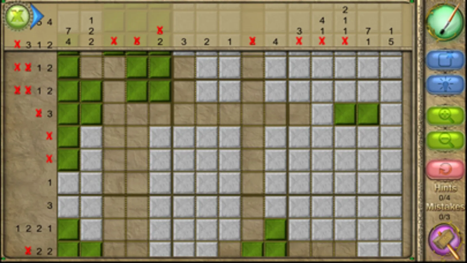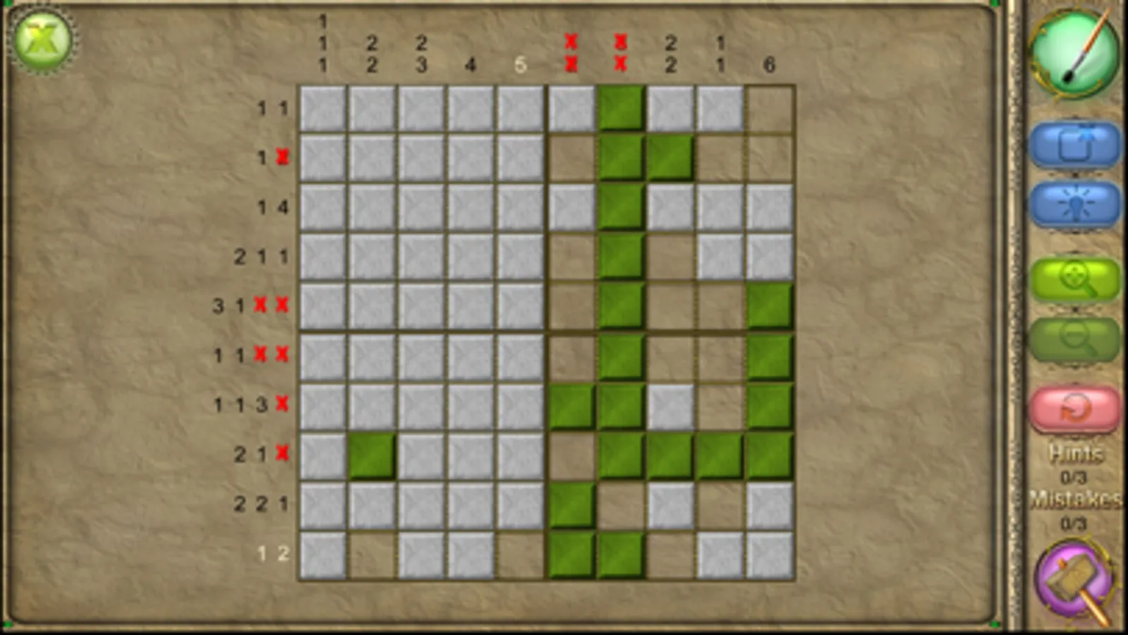 An old Japanese logic puzzle takes on a new look with FlipPix Art! Touch tiles to paint them or break them to form colorful components of paintings. The goal is to use logic to determine which tiles should be filled to reveal a hidden picture.