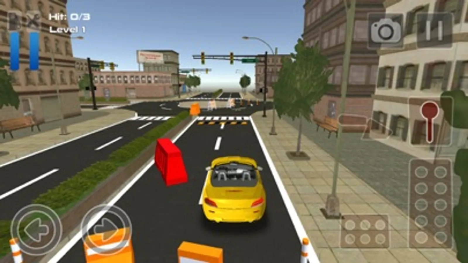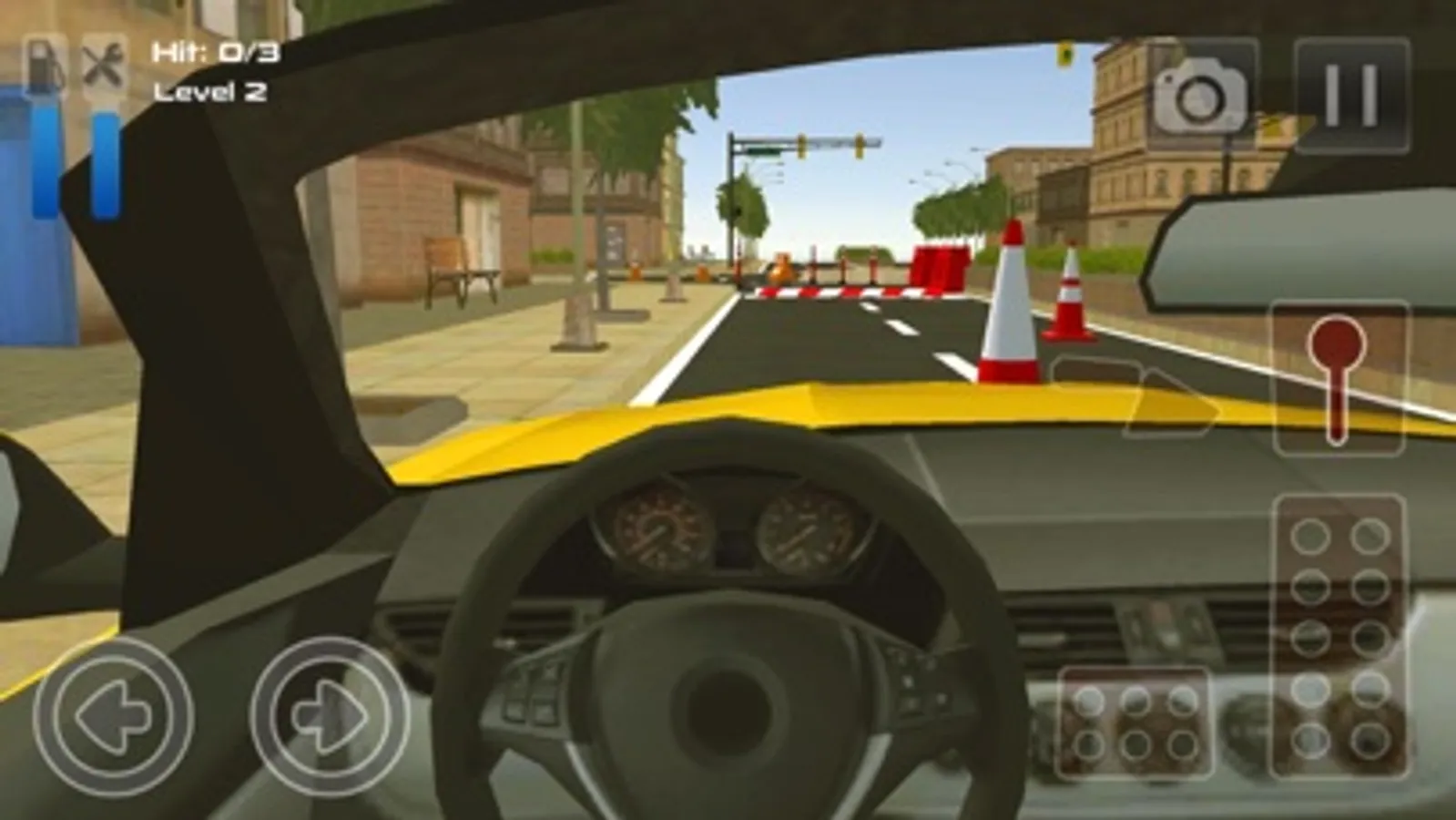 Control your car with an steering wheel, acceleration and brake pedals.