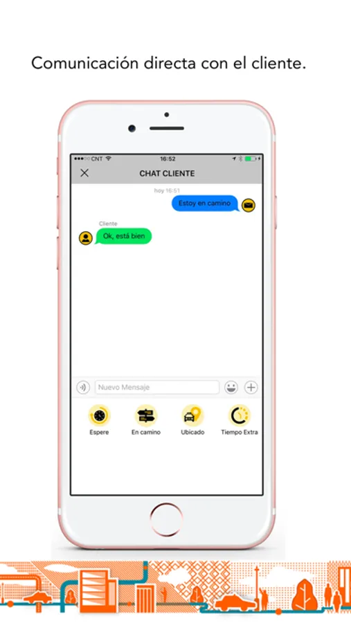 5. Inmediatamente luego de aceptar la solicitud, recibe toda la información del pasajero, además de tener la posibilidad de chatear o llamar a tu cliente en caso de cualquier eventualidad.