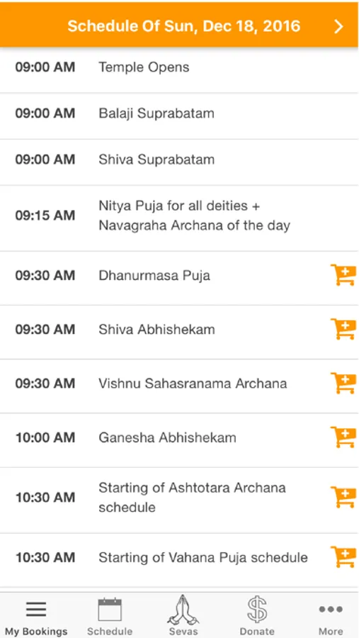 · View daily schedule of pujas and services to various deities and upcoming events