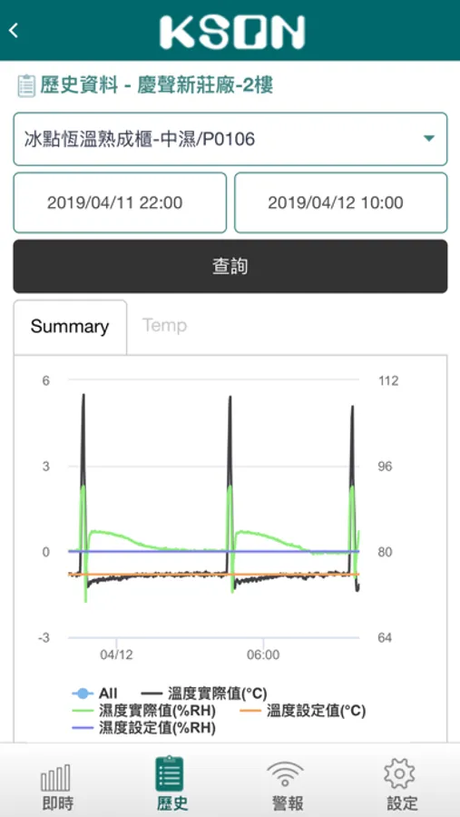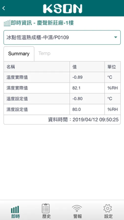透過慶聲KSON雲端健診平台,慶聲客戶可以透過手機APP遠端監控機台運轉狀態、各項運轉參數[設定溫濕度、運轉溫濕度、環境週溫、冷凍系統參數..等],如有異常也會主動告知,使用帳號密碼請與慶聲聯繫。