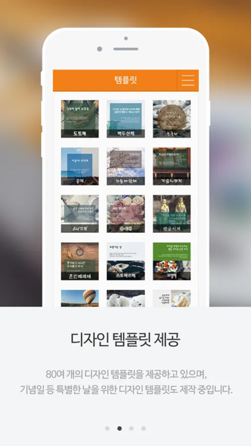 저희는 80여 개의 디자인 템플릿을 제공하고 기념일 등의 특별한 날 을 위한 디자인을 제공할 예정입니다.