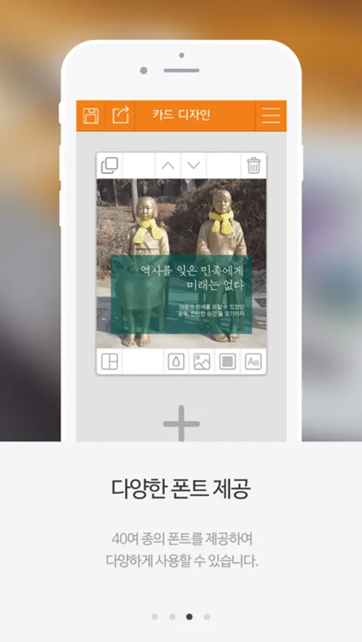 기본 폰트의 심플함도 좋지만. 총 40여 종의 디자인 폰트를 제공하여 드립니다.