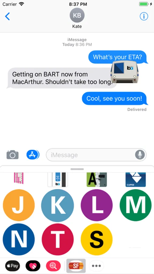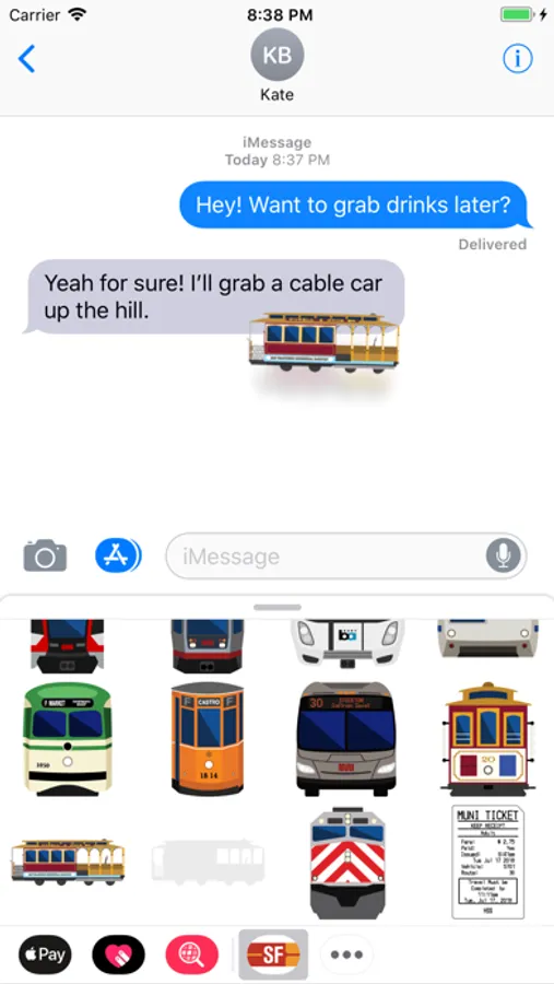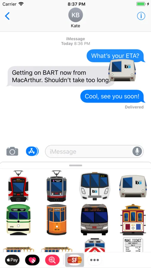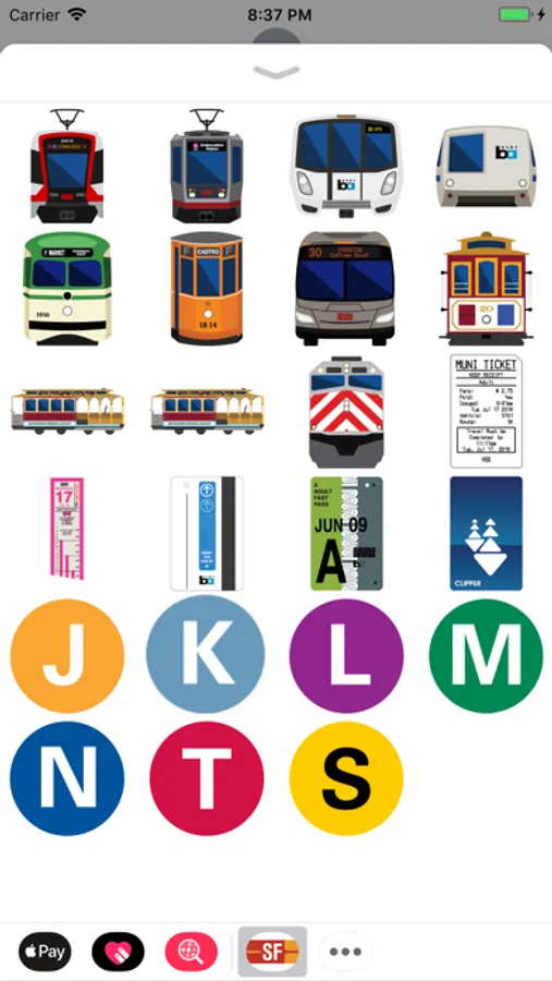 All your Bay Area public transit faves, now available as iMessage stickers! Tell your friends where you're going and how you'll get there with this beautifully-drawn sticker pack.