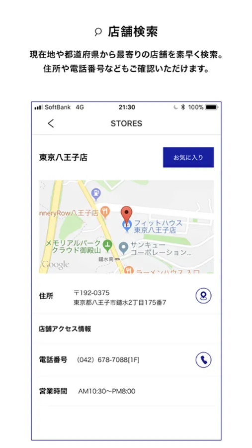 地域別にストアを検索いただける他、GPSと連動して現在地からお近くのストアを検索・お気に入り登録できます。