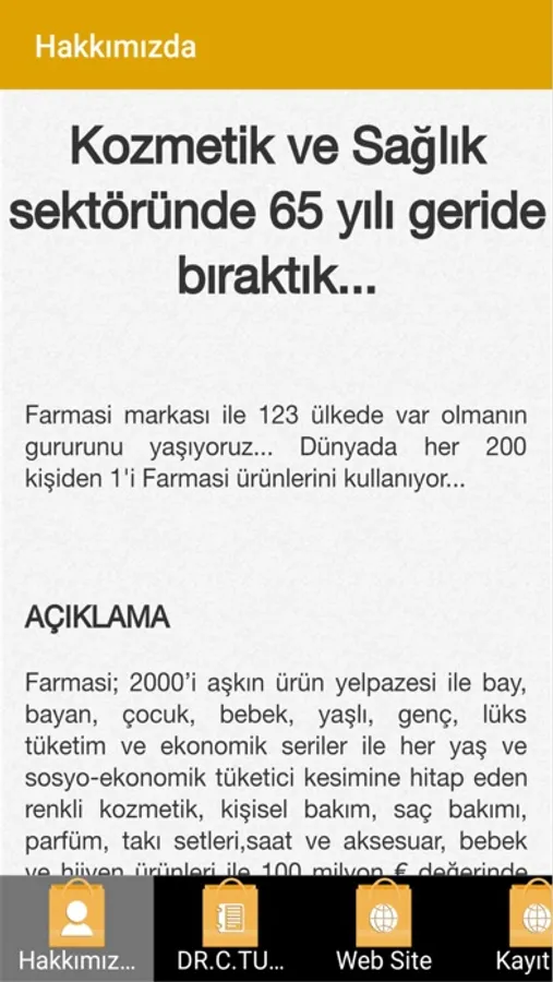 Kozmetik ve Sağlık sektöründe 65 yılı geride bıraktık... Farmasi markası ile 123 ülkede var olmanın gururunu yaşıyoruz... Dünyada her 200 kişiden 1'i Farmasi ürünlerini kullanıyor... 119 ülkeye ihracat yapan ve kozmetik sektöründe ihracat şampiyonu olan Tanalize kozmetik, ürünlerini "FARMASİ" markası adı altında Dünyada 350 milyon kişiye ulaştırıyor. Farmasi Kozmetik 5 ayrı fabrikası ile entegre bir Kozmetik üretim tesisidir... Farmasi Kozmetik Ömerlideki 40.000m2 lik kendi tesislerinde günlük bin ton üretim kapasitesi ile Kozmetik ürünleri üretmektedir. Farmasi Kozmetiği rakiplerinden ayıran en büyük özellik ise Kişisel Bakım, Islak Mendil, Makyaj ürünleri, Plastik ambalaj üretimi, Tüp üretimi ve dolumu yapabilen 5 ayrı fabrikanın aynı tesis içinde bulunması yani entegre bir tesis olmasıdır. 2000 çeşit Kozmetik ürünü... Farmasi Kozmetik ürünleri Dünyada 119 ülkede kullanıldığı için ürün gamını oluştururken Dünya trendlerini takip eder ve bu doğrultuda ihtiyaç ve taleplere yönelik ürünler geliştirir. 2000'den fazla ürün gamının olmasının en büyük nedenlerinden biride budur. Çok çeşitli ürünlerin bulunması hem bölgesel ihtiyaca yöneliktir, hemde ülkelere özel trend ayrılıklarının sebebidir. Farmasi Kozmetik Cilt bakımından, Makyaj ürünlerine, El ayak bakımından, Islak mendile, Temizlik ürünlerinden, Diş Macununa kadar 2000 den fazla ürünleri ile Dünyada 350 milyon kişiye ulaşmaktadır. Günlük bin ton üretim kapasitesi ile Private Label üretimi... Farmasi Kozmetik, günde bin ton üretim kapasitesi ile Private Label ürünlerde üretmektedir. Kişisel bakım, Makyaj, Islak mendil, Temizlik ürünleri, Diş Macunu ve Tüp üretimi kategorisinde 64 yılın tecrübe ve deneyiminin ürünü olarak, 5 ayrı fabrikası bulunan üretim tesislerinde özel markalı ürünler (Private Label) kapsamında Zincir Market ve Mağazalar ile farklı sektörlerden özel üretim yaptırmak isteyen firmalar için etkin ve verimli Private Label çözümleri sunmaktadır. Farmasi Kozmetik Ürünleri Sağlık Bakanlığı Onaylı Olup,Helal Belgelidir.